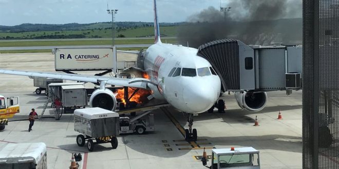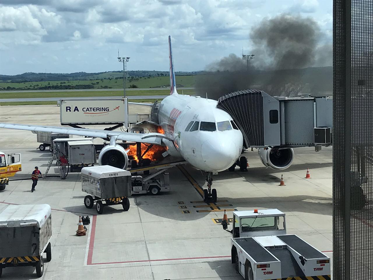 Um incêndio próximo a uma aeronave da Latam assustou passageiros e funcionários do Aeroporto Internacional Tancredo Neves, em Confins, na região metropolitana de Belo Horizonte, no começo da tarde desta terça-feira (26).