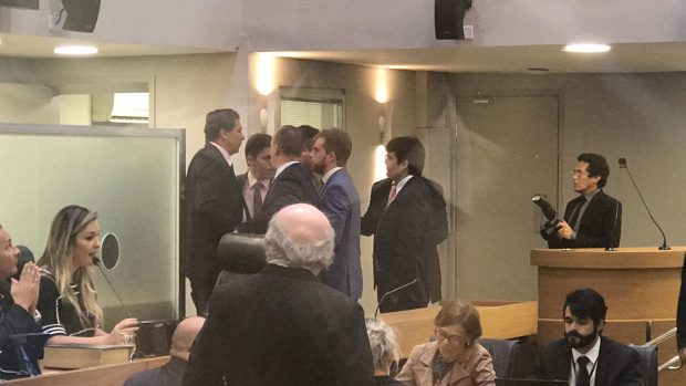 Foi então que uma grande discussão entre os parlamentares teve início, sendo necessário a intervenção de outros deputados para acalmar os ânimos.