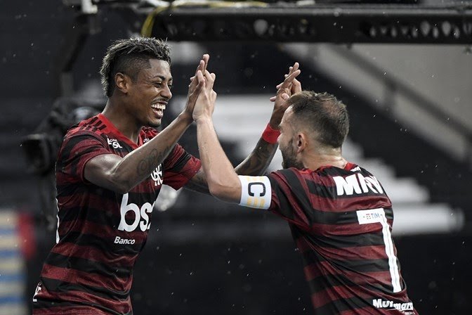 Mas, aos 32 minutos, Bruno Henrique marcou novamente. Cáceres perdeu a bola para Arrascaeta. O uruguaio cruzou, Fernando Miguel espalmou e evitou o gol de Gabigol, mas Bruno Henrique marcou no rebote.