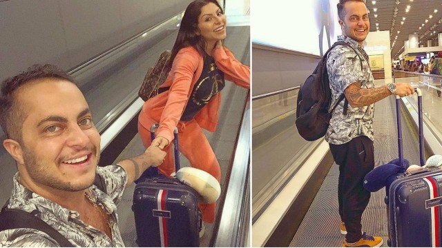 Ao postar uma foto embarcando para os EUA, Thammy escreveu: “A única coisa que eu sei é eu embarco filho e só volto pai. Me segura em Miami”.