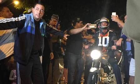 Na porta do forte, Bolsonaro parou o veículo, tirou o capacete e foi cercado por aproximadamente dez pessoas que tentavam agarrá-lo e tirar foto ao seu lado.
