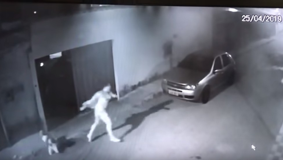 Imagens de uma câmera de segurança mostram a vítima fugindo de casa após o ex marido ter jogado ácido em seus olhos, na cidade de Sobradinho, no Distrito Federal.