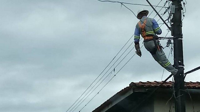 Revoltado ao ter seu fornecimento de energia elétrica interrompido, um cliente retirou a escada e deixou pendurado no poste o técnico que executou o serviço.