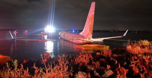 O avião, um Boeing 737-800 fretado que voou da Estação Naval na Baía de Guantánamo com 136 passageiros e sete membros da tripulação, caiu no rio St. Johns no final da pista de pouso da Estação Aérea Naval em Jacksonville por volta das 21h40, horário local, disse um porta-voz da base aérea da Flórida.