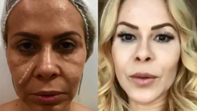A cantora de 44 anos realizou uma harmonização facial e também se submeteu a um preenchimento labial e facial numa clínica em Minas Gerais.