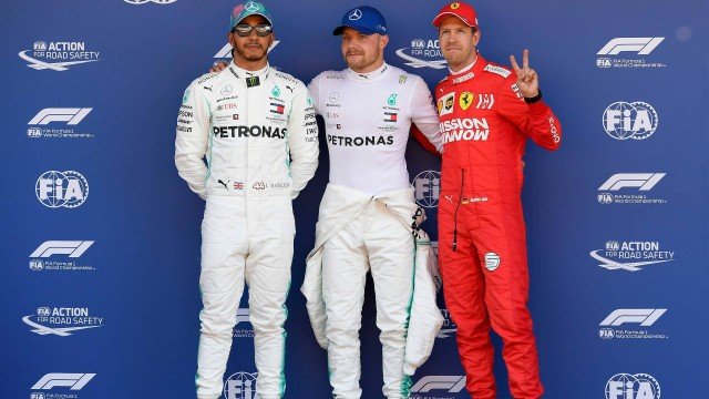 Hamilton vai largar em segundo, com 1m16s040, seguido do pela Ferrari do alemão Sebastian Vettel, que fez 1m16s272. O britânico está atrás do companheiro por um único ponto depois de quatro das 21 corridas do ano, e ele fez isso em um tempo recorde de um minuto e 15,406 segundos.