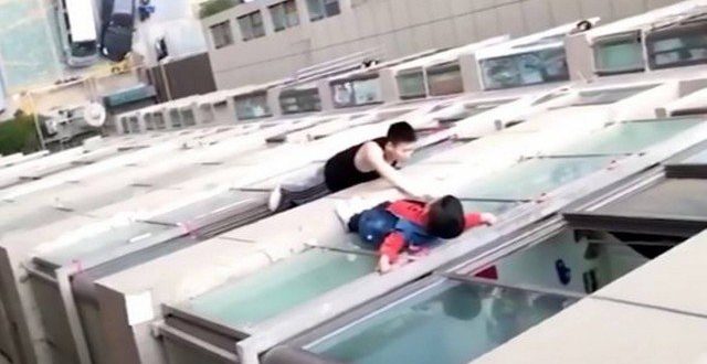 Um menino de 5 anos foi resgatado após ficar em pé do lado de fora de uma janela do apartamento em que mora, na província de Jiangsu (China), a cerca de 40 metros de altura. A criança estava sozinha em casa.