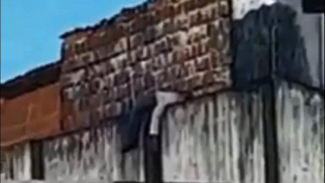 Um vídeo em que mostra o homem dormindo em cima do muro foi compartilhado nas redes sociais. De acordo com a polícia, o “intruso” não tem antecedentes criminais e estava desorientado.