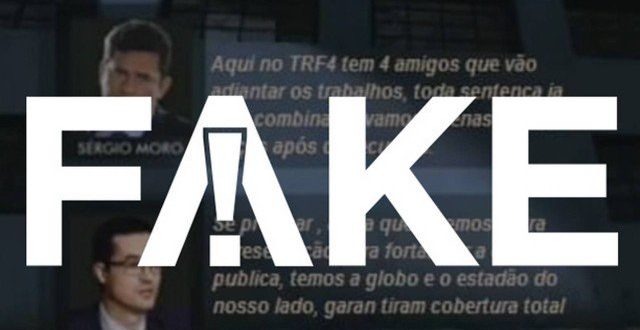 Circula na web um print com os rostos do ministro da Justiça, Sérgio Moro, e do procurador Deltan Dallagnol e um diálogo em que o ex-juiz diz que “no TRF 4 tem 4 amigos que vão adiantar os trabalhos” e que a sentença de Lula “já está combinada”. É #FAKE.
