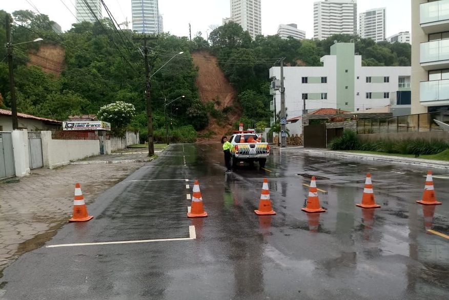A Semob interditou algumas das ruas próximas à barreira do Cabo Branco na tarde deste domingo (16), após deslizamentos causados pela chuva.