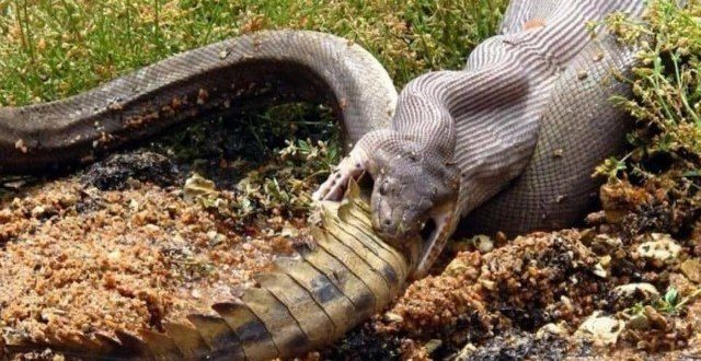A píton começa a devorar o crocodilo