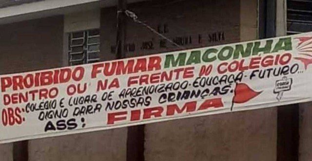 “Proibido fumar maconha dentro ou na frente do colégio. Obs: Colégio é lugar de aprendizado, educação, futuro… Ass: Firma”, dizia o cartaz, já removido do local.