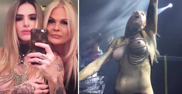 A publicação foi considerada inadequada. Nas imagens, a loira aparece tocando na boate gay The Week, no Rio, com os seios de fora.