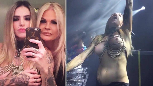 A publicação foi considerada inadequada. Nas imagens, a loira aparece tocando na boate gay The Week, no Rio, com os seios de fora.