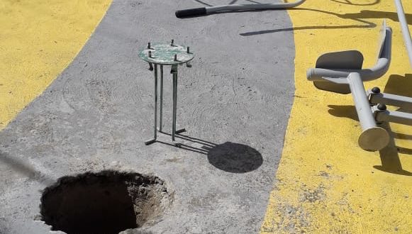 Em vídeos espalhados nas redes sociais nota-se que alguns equipamentos foram danificados e o concreto solto de forma proposital para induzir os bayeuxenses e os internautas para que a obra tivesse sido entregue com esse problema.
