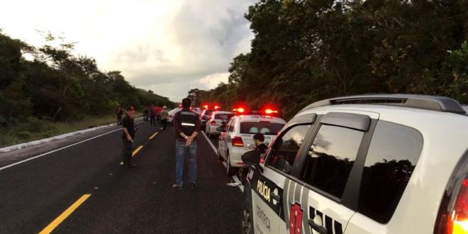 Policiais foram até o local indicado constatando o crime e conforme relatos periciais, o homem não identificado, de aproximadamente 35 anos, estava com as mãos amarradas, foi morto com tiros no rosto e teve a cabeça parcialmente esmagada a pedradas.