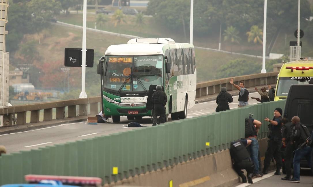 O coletivo é da linha 2520 (Jardim Alcântara – Estácio). As pistas no sentido Rio e Niterói estão totalmente interditadas por conta do cerco policial. O Centro de Operações Rio (COR) orienta que as pessoas utilizem as barcas como alternativa.