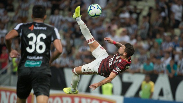 Em Fortaleza, o Flamengo dividiu torcida com o Ceará, que atacou no início e levou perigo. A defesa rubro-negra se portou bem, com o time no 4-1-4-1, reagindo em bolas longas no contra-ataque. Berrío foi o personagem do começo do jogo, quando perdeu um gol na pequena área. Mas depois se redimiu. Em lance de lateral, Rodrigo Caio escorou, o atacante ajeitou e Pablo Marí finalizou com categoria, de canhota.