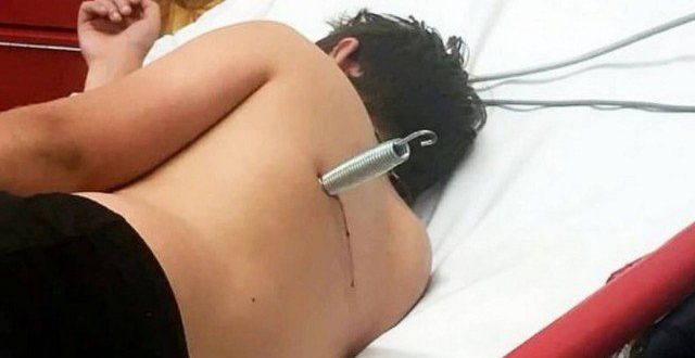 O objeto de metal entrou seis centímetros na costas de Jamie Quinlan. O pai do adolescente foi chamado à residência e levou imediatamente o filho a um pronto-socorro próximo, contou o “Daily Star”.