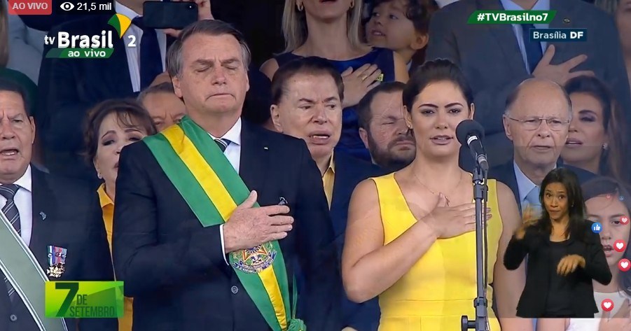 Estavam no mesmo palco que Jair Bolsonaro, ministros do governo, o empresário e apresentador Silvio Santos, o empresário Luciano Hang, líderes religiosos Edir Macedo e RR Soares, além de outras autoridades e personalidades públicas.