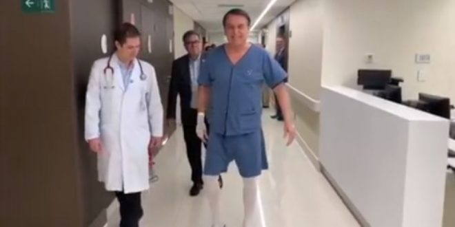 Barros relatou que Bolsonaro caminhou três vezes e ainda caminhará mais uma. As caminhadas fazem parte do processo de fisioterapia e são orientadas pela equipe médica. A Presidência divulgou vídeo em que Bolsonaro aparece caminhando com passos ritmados, empurrando um suporte onde está uma bolsa com a alimentação que vem recebendo por via venosa.
