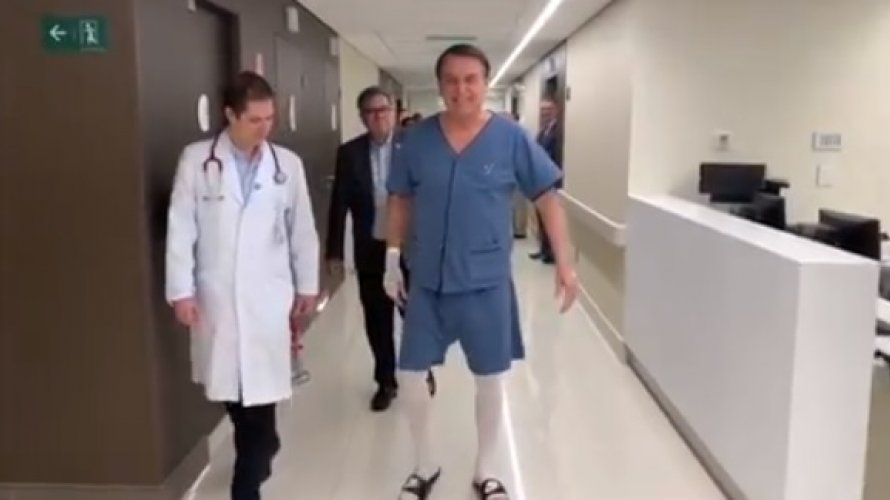 Barros relatou que Bolsonaro caminhou três vezes e ainda caminhará mais uma. As caminhadas fazem parte do processo de fisioterapia e são orientadas pela equipe médica. A Presidência divulgou vídeo em que Bolsonaro aparece caminhando com passos ritmados, empurrando um suporte onde está uma bolsa com a alimentação que vem recebendo por via venosa.