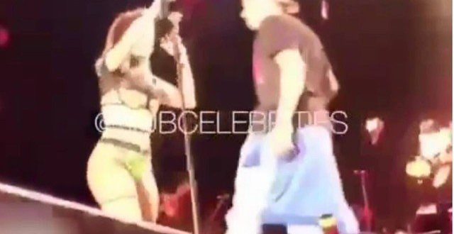 Ele não possuía nada nas mãos e tentou falar alguma coisa para ela. Anitta correu e foi para atrás da banda.
