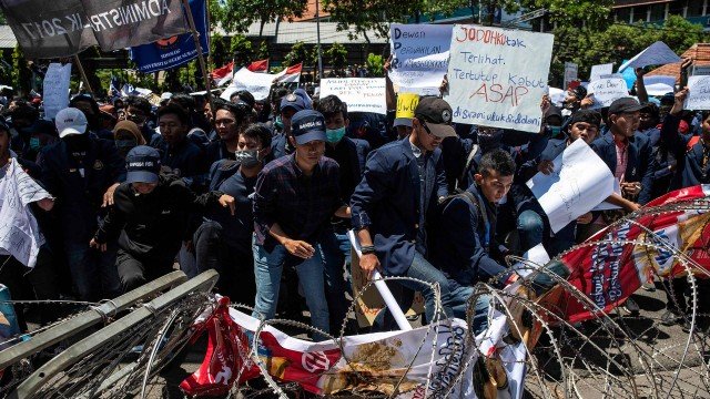 Um dia depois que conflitos com a polícia deixaram 300 feridos em Jacarta, na capital da Indonésia, estudantes foram às ruas do país pelo terceiro dia contra o novo código penal que proíbe o sexo fora do casamento e prevê penas para quem insultar a honra do presidente, Joko Widodo.