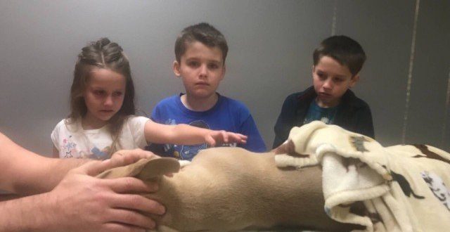 Segundo a dona do cachorro, Georgina Richardson, os filhos estavam do lado de fora brincando com os cachorros. Oriley, o mais novo, notou que Zeus havia pulado em sua direção com uma “corda na boca”.