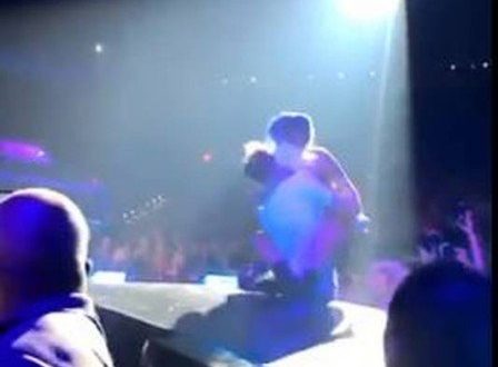 Fãs que estavam no show da turnê “Enigma” gravaram o momento em que a cantora cai do palco com o fã, que parece não ter se dado conta do quão perto estava da borda. O público que estava no local, entretanto, afirmou que a artista continuou a apresentação normalmente após a queda.