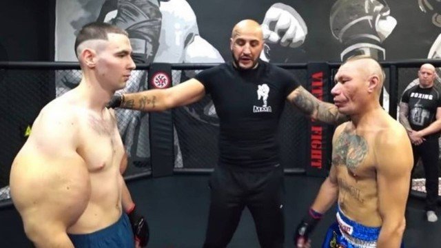 O ex-militar conhecido como “Popeye” russo fez recentemente a sua estreia no MMA (artes marciais mistas). Kirill Tereshin, que ficou famoso após injetar grande quantidade de Synthol nos braços e nas pernas, foi derrotado em apenas três minutos no duelo amador.