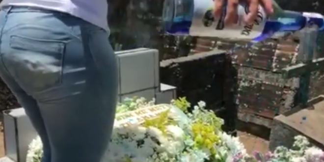 Um vídeo foi divulgado nas redes e mostra os jovens com uma garrafa de bebida alcoólica, enchendo os copos e cantando a música “Surtada”. Logo em seguida eles jogam a bebida em cima do túmulo.
