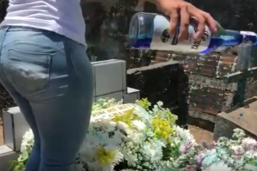 Um vídeo foi divulgado nas redes e mostra os jovens com uma garrafa de bebida alcoólica, enchendo os copos e cantando a música “Surtada”. Logo em seguida eles jogam a bebida em cima do túmulo.