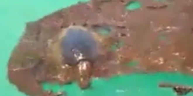 Um vídeo está comovendo os internautas. As imagens que foram gravadas nesta quinta-feira (24) mostram pescadores tentando salvar um filhote de tartaruga das manchas de óleo na praia de Acaú, localizada entre o litoral Sul da Paraíba e litoral Norte de Pernambuco.
