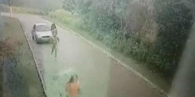 Nas imagens divulgadas pela página Rlagos Notícias, é possível ver a vítima andando sozinha pela rua quando o homem estaciona e desce do veículo nu. Ele corre atrás da mulher, mas desiste e volta para o carro. Confira o vídeo: