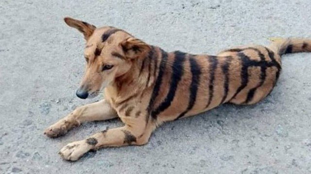 Um agricultor do vilarejo de Naluru (Índia) apelou à criatividade para afugentar macacos da sua plantação: ele pintou o seu cão com listras pretas para que ele ficasse parecido com um tigre de Bengala.