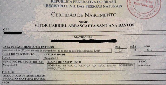 Em especial, Gabigol e Arrascaeta. Mas o rubro-negro Alex Bastos, de 34 anos, foi além e, tomado pela felicidade causada pelos títulos, registrou a certidão de nascimento do filho levando os nomes da dupla rubro-negra. E não foi brincadeira de torcedor.
