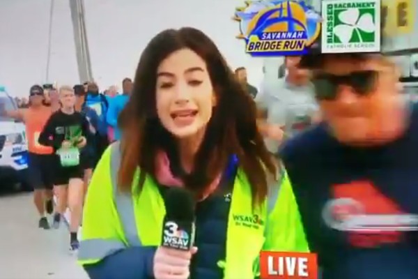 Um corredor de maratona deu um tapa ao vivo no traseiro de uma repórter de TV que cobria a disputa realizada no estado norte-americano da Geórgia. A jornalista Alex Bozarijan cobria a corrida de 10 KM Savannah Bridge Run quando foi vítima do assédio.