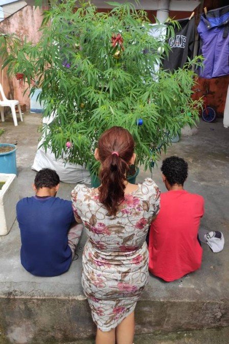 Os agentes encontraram dois pés de maconha, um deles com aproximadamente dois metros de altura, transformadas em árvores de Natal.