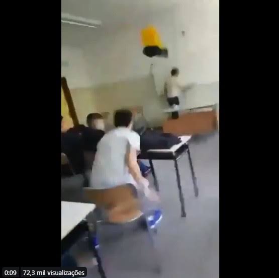 Um professor de história foi atingindo por uma lixeira arremesada por um aluno na sala de aula, do sexto ano do ensino fundamental, da região da Pampulha, em Belo Horizonte, em Minas Gerais.