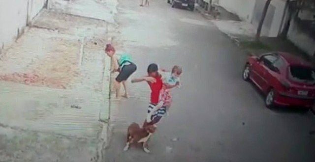 Alvo do ataque, a criança estava acompanhada da babá e andava em um patinete. O vídeo mostra que quando o cachorro avança, a mulher ainda tenta puxar o menino, sem sucesso.