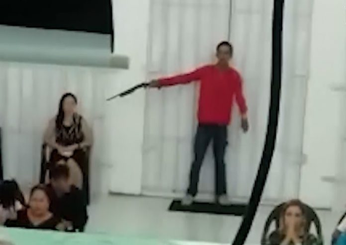Homem aponta arma para cabeça de mulher durante culto em Manaus — Foto: Reprodução