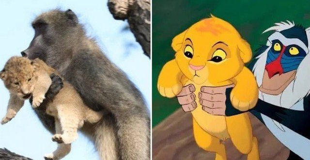 Um macaco reproduziu uma cena de “Rei Leão” no Parque Nacional Kruger, na África do Sul. O babuíno foi visto segurando e cuidando de um filhote de leão como, no desenho animado da Disney, Rafiki fez com o pequeno Simba.