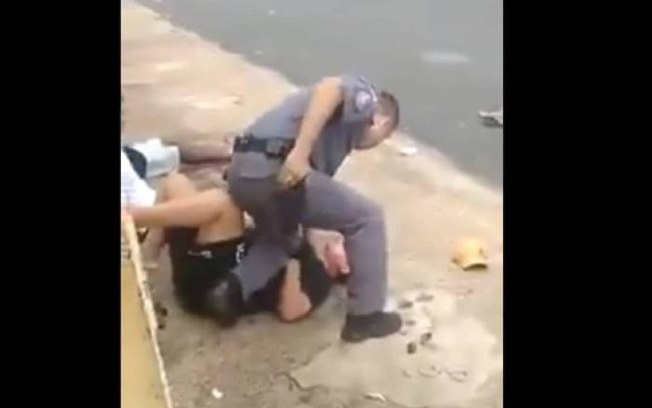 Ainda é possível ver que moradores que presenciam a agressão pedem para o policial parar, dizendo que a mulher está grávida. Em seguida, ele diz que ela está presa e as testemunhas voltam a pedir para ele parar de pisar na barriga dela.