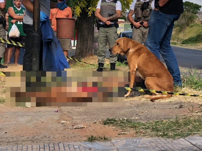 O corpo de Rogério, como ele era conhecido, foi encontrado próximo de uma parada de ônibus. Companheiro da vítima por cerca de dois anos, Scooby permaneceu ao lado do dono.