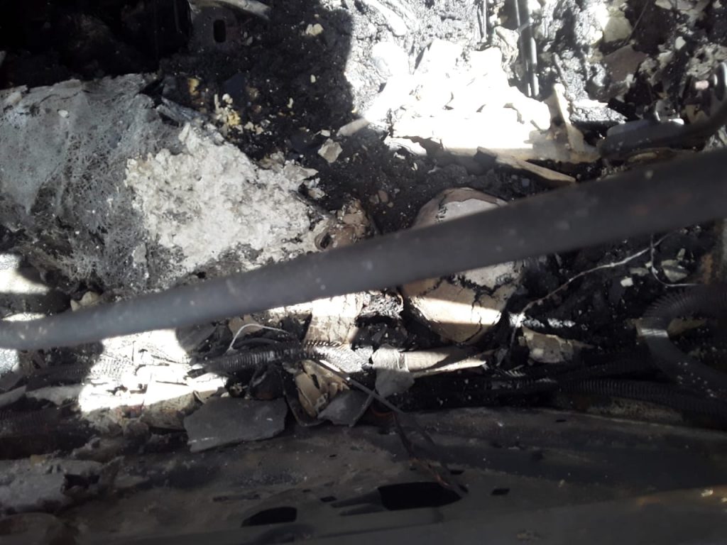 O veículo também ficou destruído por causa do incêndio que ocorreu na madrugada desta sexta-feira.