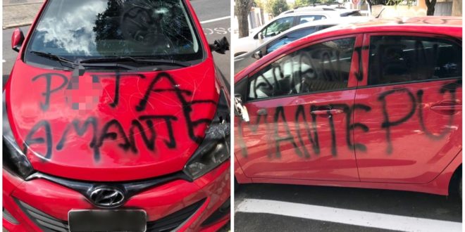 Uma mulher procurou a Polícia Civil de Sorocaba após ter o veículo depredado e pichado com ofensas e as palavras “amante” e “puta” na lataria.
