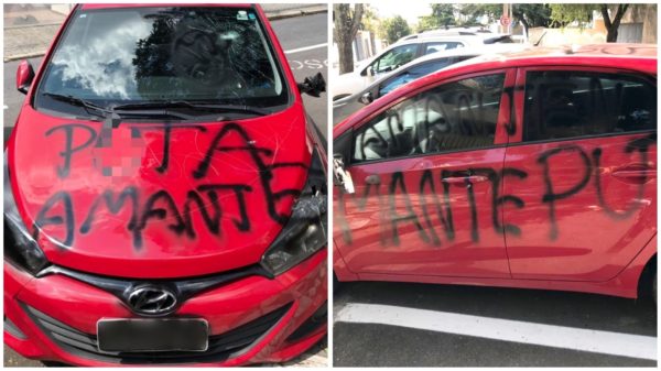 Uma mulher procurou a Polícia Civil de Sorocaba após ter o veículo depredado e pichado com ofensas e as palavras “amante” e “puta” na lataria.