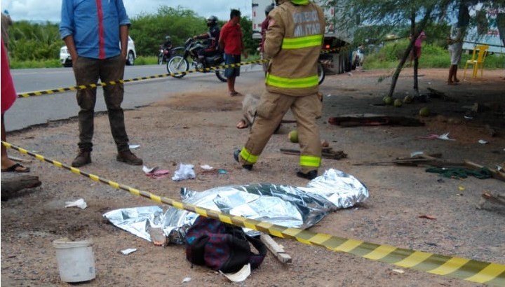 Um motorista perdeu o controle do veículo na manhã deste sábado (14), e atropelou uma mulher e deixou três feridos, no distrito de São Gonçalo, município de Sousa, na Paraíba. Uma mulher identificada por Damiana, morreu ainda no local.
