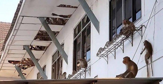 Os macacos destruíram boa parte do prédio arrancando telhas do telhado e deixando armações de metal penduradas perigosamente. As imagens que viralizaram também mostram um enorme buraco no telhado, fios elétricos arrancados das paredes e telhas de cerâmica quebradas.